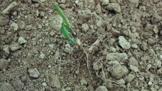 Csíranövény: Tavasszal kel. Az első levele 20-25 mm hosszú, kopasz felszínű, színe vöröseslila. A fiatal növény levélhüvelye sima, a legfiatalabb – középső – levél begöngyölt. Nyelvecskéje sertés-fogas. A levéllemezen világos színű középér figyelhető meg, széle fogacskázott, levélszíne pelyhes lehet.