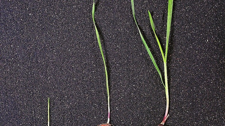 Csíranövény: A legfiatalabb levél begöngyölt. A levélhüvely alul gyakran piros.