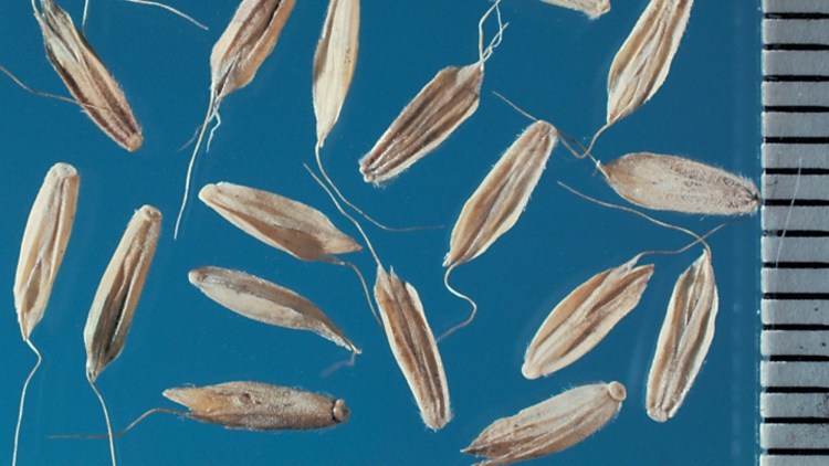 Termés: Tojásdad alakú szemtermése sárgásbarna, 5-5,5 mm hosszúságú, felszíne érdes. A háti toklászok szálkája térdesen hajlott. Növényenként 300 db magot érlel. A magok 15 évig őrzik meg életképességüket a talajban.