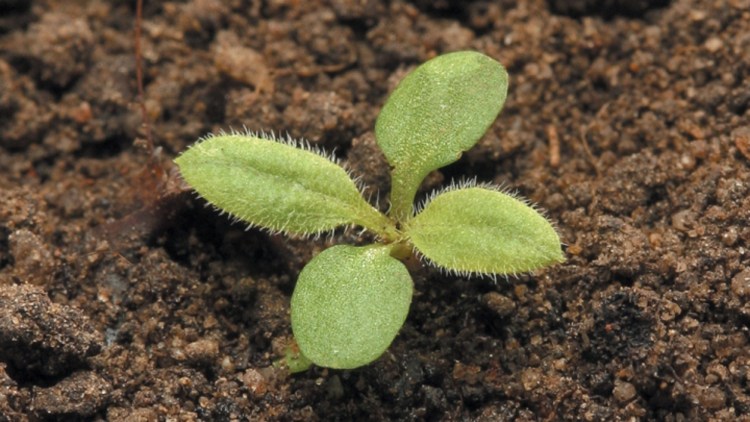 Csíranövény: A sziklevél alatti szárrész vöröses-kékes lehet. A csíranövény nyeles sziklevelei aprók, oválisak, csúcsuk lekerekített. Az első levél rövid, ovális, apró szőrökkel fedett. A levélnyél hosszú és szőrös. A következő levelek megnyúltabbak, szőrösebbek, fogazottak. A későbbi levelek tőlevélrózsát alkotnak.