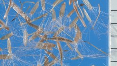Termés: Kaszattermése lapos, hosszúkás (1-2 mm), színe viaszosan áttetsző sárgás. A felszínét fehér szőrök borítják, amelyek száraz állapotban rásimulnak a termésre, nedvesen pedig elállók. Bóbitája fehéres, háromszor hosszabb, mint a kaszat. Töve nem alkot összefüggő koronát. Növényenkénti magprodukciója 100 000-150 000 db. Szél útján terjednek a magvai, a bóbitás termését könnyen felkapják a légáramlatok.