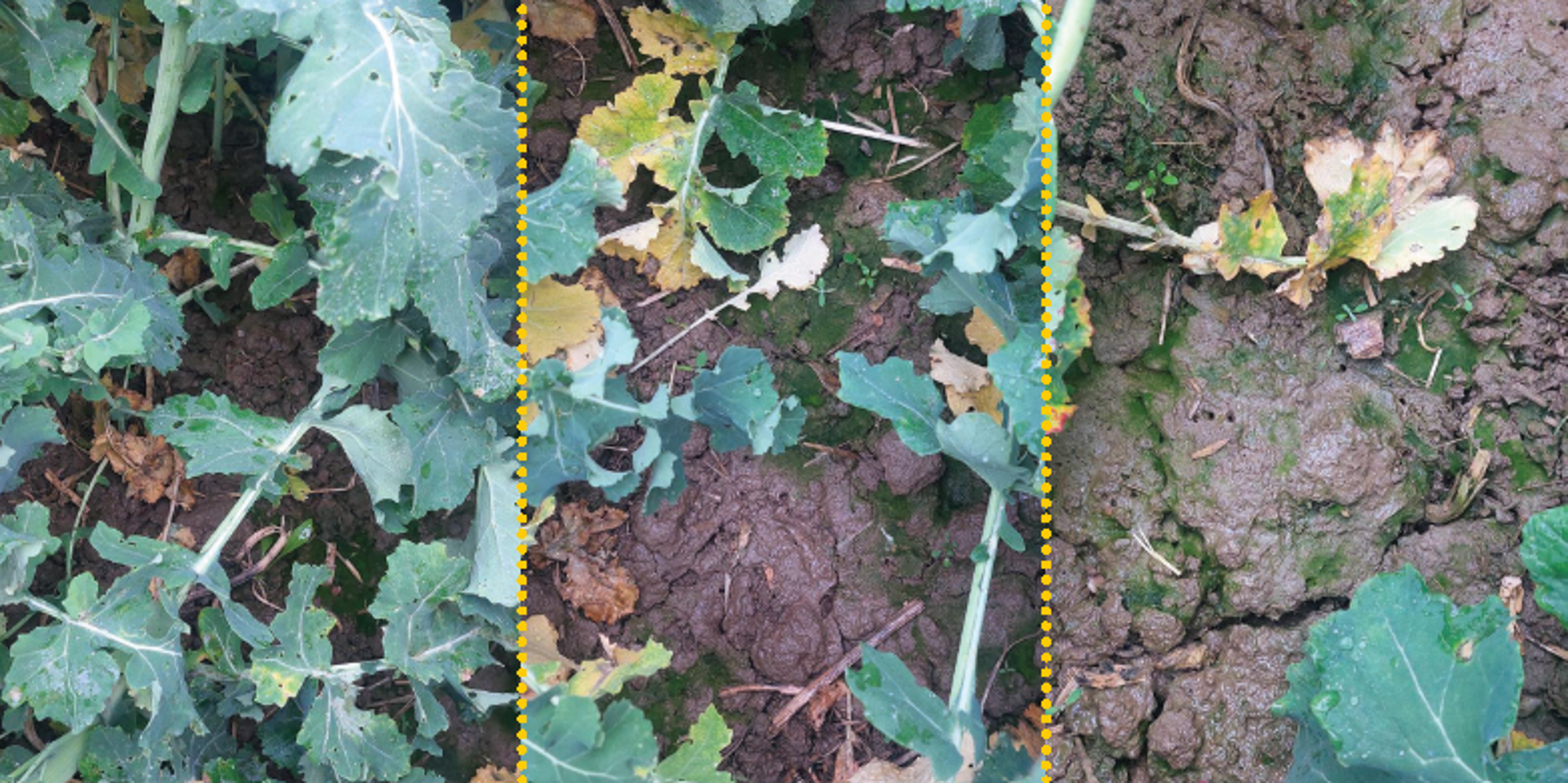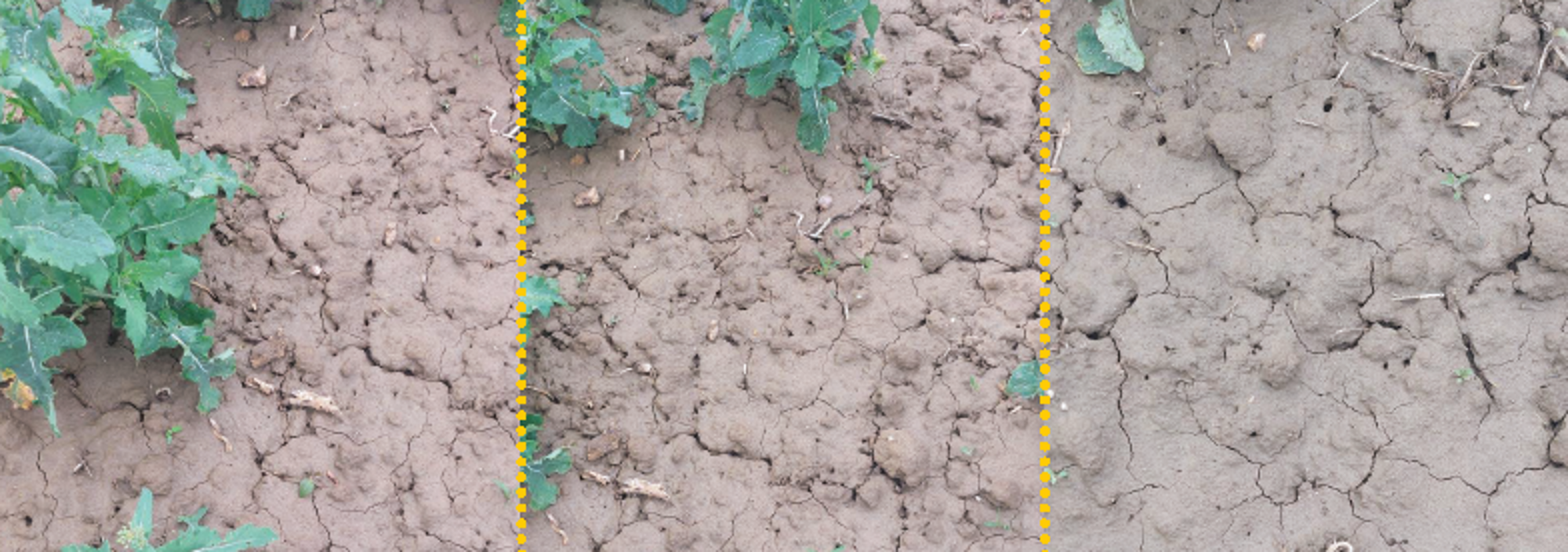 A Butisan® Complete azonban még ennél is sokkal többre képes: a kísérleti területet április elején bejárva azt tapasztalhattuk, hogy azokon a foltokon, ahol a repce valamilyen okból nem volt képes zárt állományt alkotni, a Butisan® Complete-tel történt kezelés hatására a gyomok ott sem voltak képesek felszaporodni, akár preemergensen, akár korai posztemergensen történt a növényvédő szer kijuttatása. (3. kép)