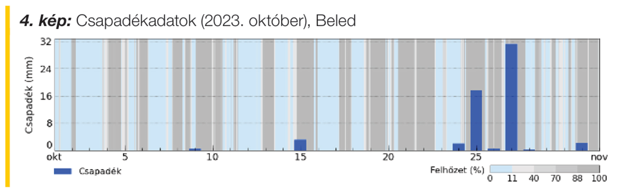 Nagyon jól tudjuk, hogy a tartamhatás kialakulásához alapvető a megfelelő mennyiségű és megfelelő időben érkező bemosó csapadék. A különböző gyomirtók eltérő bemosócsapadék-igénnyel rendelkeznek ugyan, de általánosságban elmondható, hogy akkor beszélhetünk egy preemergens kezelés optimális megázásáról, ha legalább 10–15 mm egyadagú bemosó csapadék érkezik 5–7 napon belül. Sajnos azonban ez az optimális állapot csak ritkán áll fenn, igen gyakran csak túl későn, vagy nem megfelelő menynyiségben érkezik a csapadék. A Butisan® Complete versenytársaihoz képest sokkal kevésbé érzékeny a bemosó csapadék mennyiségére, és főleg idejére. A korábbi évek tapasztalatát erősíti a 2023-ban Beleden beállított kísérletünk is, hiszen ebben a kísérletben is több mint három hét telt el az október 3-án elvégzett preemergens kezelés és az október 25-én esett megfelelő mennyiségű bemosó csapadék meg érkezése között (4. kép).